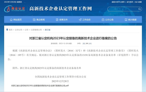 2023年12月28日,全國高新技術(shù)企業(yè)認定管理工作領導小組辦公室發(fā)布《對浙江省認定機構(gòu)2023年認定報備的高新技術(shù)企業(yè)進行備案的公告》,中國能源工程集團有限公司(以下簡稱“中國能源工程集團”)所屬中清能源(杭州) 有限公司...